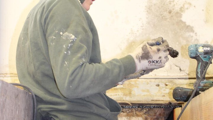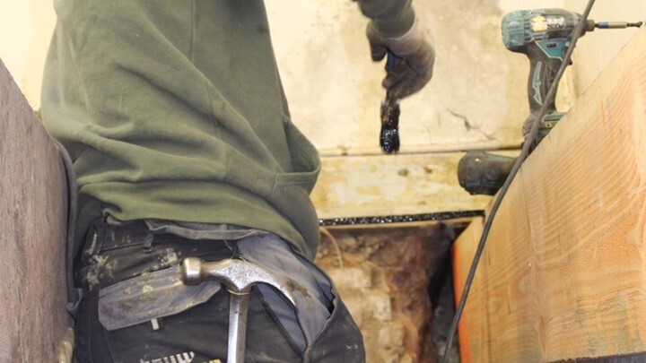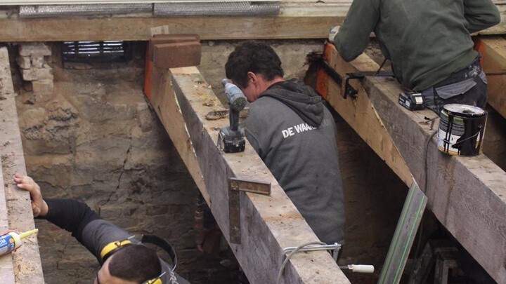 Mauritskade, herstellen balkknopen en houten vloer.